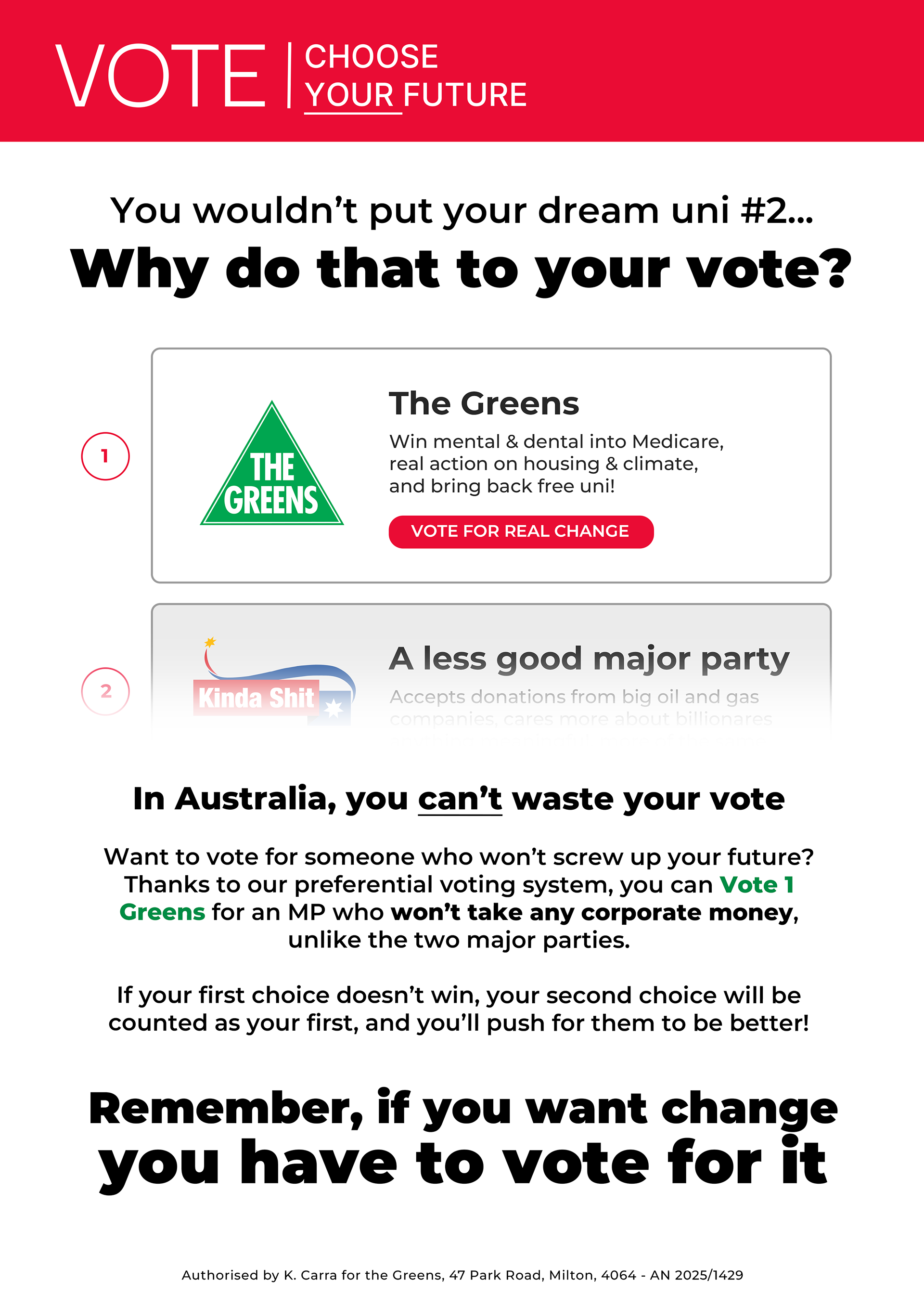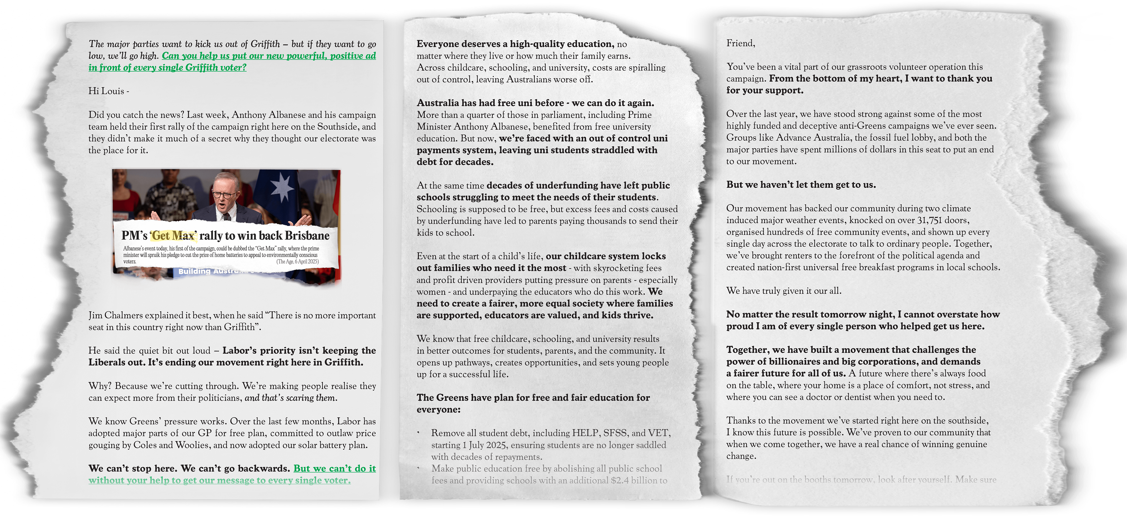 I had the great opportunity to work on Max Chandler-Mather's 2025 re-election campaign, working on copywriting, supporter communications, graphic design, and social media moderation. While we weren't able to get across the line this time, I couldn't be more proud of the work our team did to directly support the community and change politics for the better.