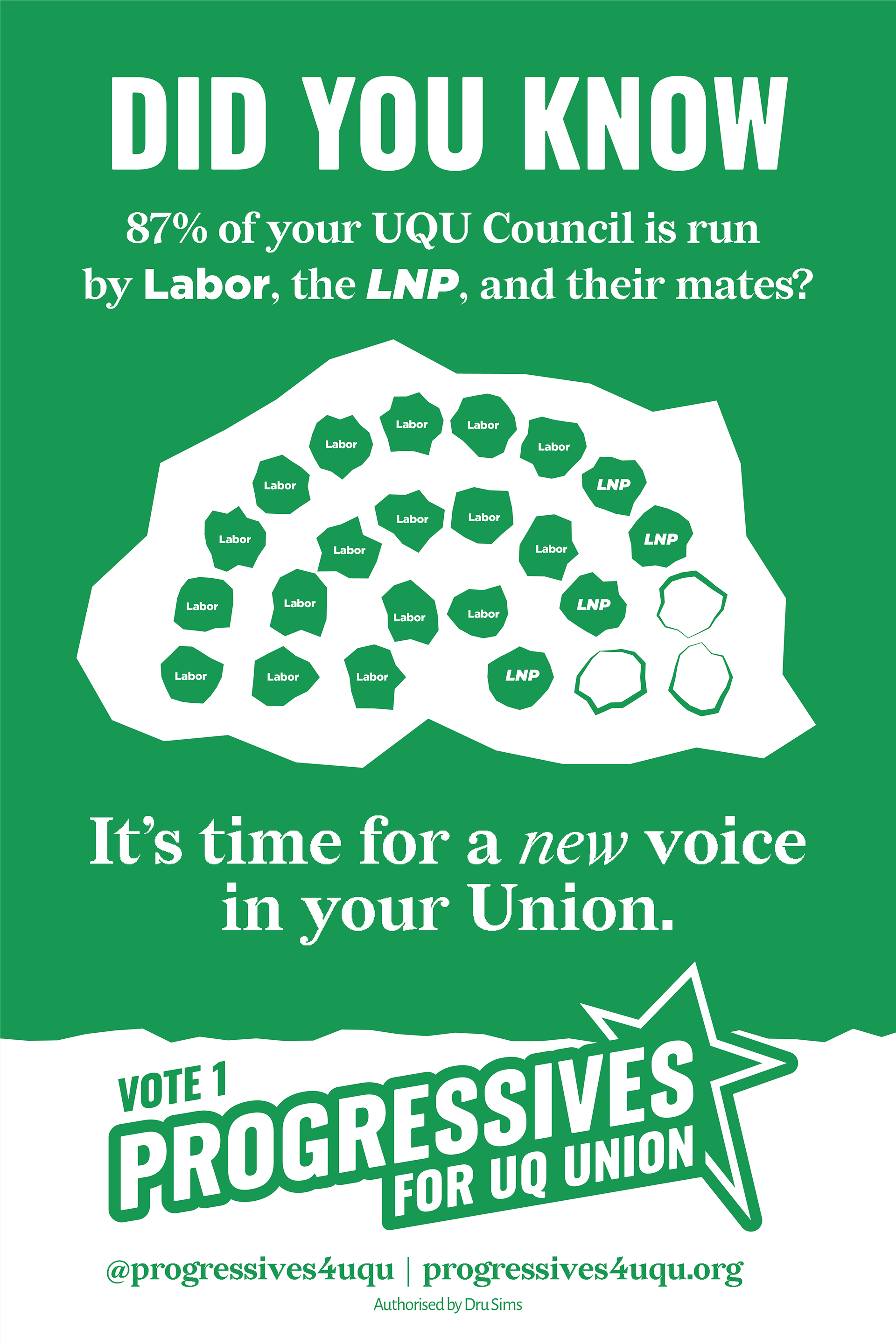 So when i was asked to do some work on a new project by the Queensland Greens to develop communications for the UQ Greens first run at union representation, I was skeptical. But in an effort to combat the post federal 25' election blues i said yes.