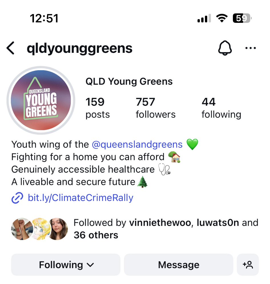 I also had the opportunity to rebrand the Queensland Young Greens! What started off as a minor adjustment to the font of very old logo turned into a full consultative process to create a unique identity that still fits in with Greens branding.